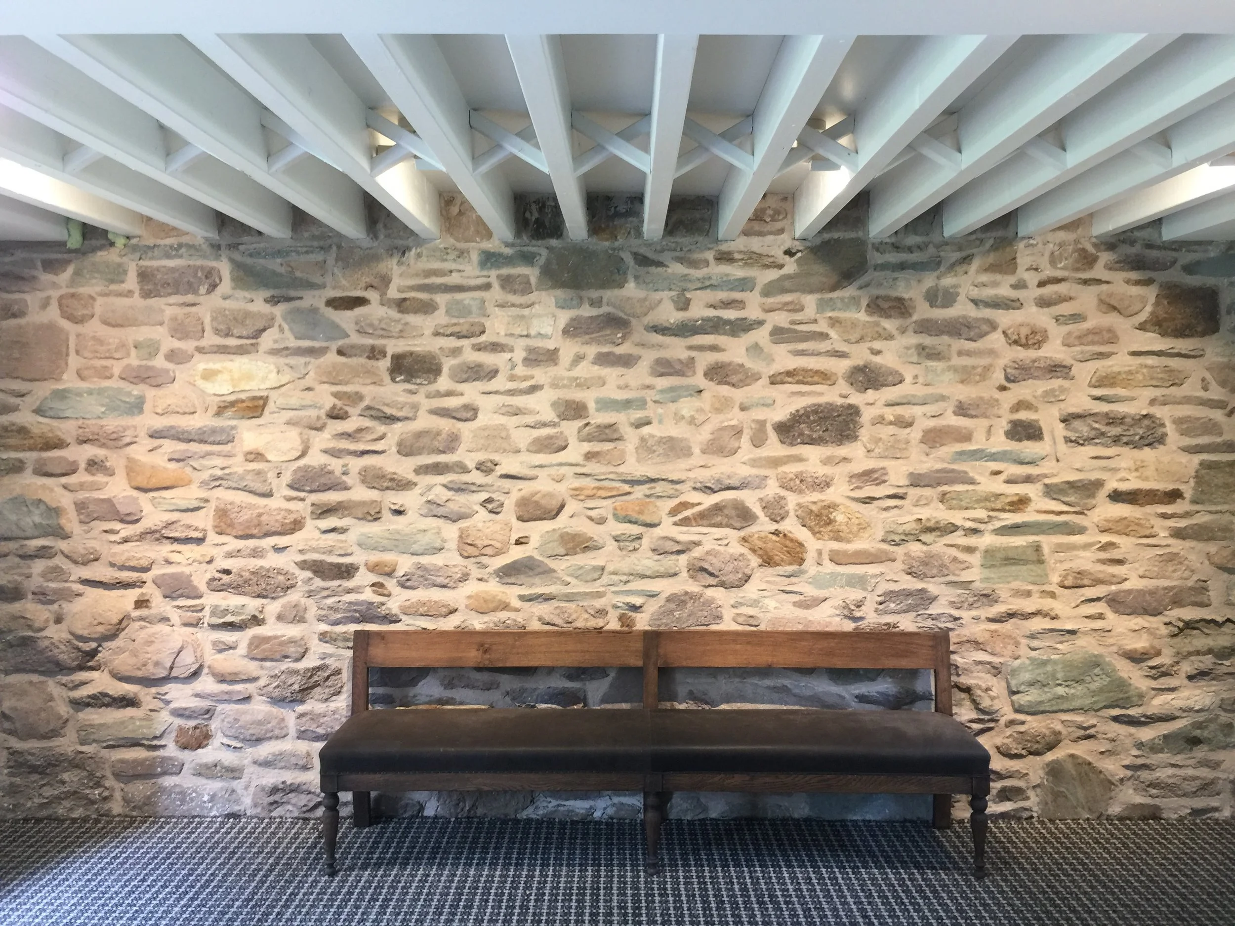 This project required the reinvention of a derelict barn and farm yard into a private gallery and lecture space on the upper level, with a classic car garage, catering space and library on the ground floor - all within the setting of stepped courtyard garden. Photos by Karen Dempsey Photography.